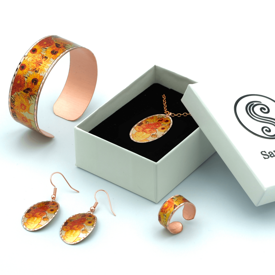 Vincent van Gogh “Vase with Fifteen Sunflowers” Sanatsal Takı Seti